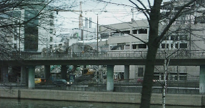 Här rivs Stockholms gamla postterminal Klara bredvid Centralstationen. (Det tycks trist nog ske med grävmaskin och inte genom sprängning, som det stått i tidningen tidigare.) Det stora betongschabraket ska ge plats åt hotell- och konferensanläggning, med motiveringen att det ligger nära och bra till vid järnvägen.