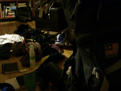 Dags igen och i vanlig ordning går det till så att allt man ska ha med hamnar i en hög varefter det åker ner i ryggan. Det brukar kännas mindre tungt när man provlyfter eländet sedan än man trodde först. Men den här gången är jag fundersam, det känns som en rätt rejäl vikt innan jag ens lagt ner det. Bara åsynen av alla grejor liksom. Men den ordnar sig säkert.