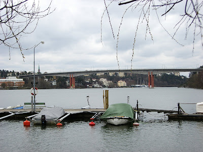 Lite bortglömda precis till vänster nedanför Tranebergsbron från Stockholms city räknat ligger Alviks strand och Tranebergs strand, strax norr om idylliska Äppelviken. På sommaren ett fint jogging- och promenadstråk längs vattnet med ett par caféer och restauranger, på vintern som nu mest grått. Men utsikten är strålande ändå, med Tranebergsbron på den ena sidan, tågbron på den andra och Fredhällsbron rakt över vattnet. Alviks torg är faktiskt inte det tristaste i stan, inhysta som butikerna är i en gammal tegelbyggnad som flankeras av tvärbanan och t-banan.