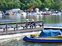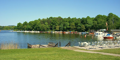Hagaparken, Stockholm, lördag 24 maj. Jag var på väg till Koppartälten i parken, som Statens Fastighetsverk höll öppna på lördagen, när jag hörde ljudet från den här fina snipan (klicka på play i filmrutan här nedanför). En tändkulemotor som står och tuffar på tomgång tar man inte fel på. Skön musik. Är det en Säfflemaskin, undrar man?