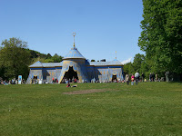 Så här ser det ut inne i det största av Koppartälten i Hagaparken. Just inget mer än ett tält. I koppar. Det vänstra tältet innehåller dock bostäder.