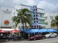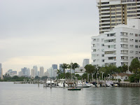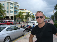 När regnet kom, mindre i omfattning idag än igår, hamnade vi på ett plejs vid South Beach under en parasoll och tog ett par pilsner. Sen inmundigade vi varsin fet eftermiddagsmacka på Jerry’s Famous Deli – där Tom Selleck tydligen käkat ihop med en massa andra b-kändisar under sin glans dagar – vid Collins Avenue, varefter vi gick en promis längs shopping- och restauranggatan Lincoln Road (se kartlänk nedan) bort till vattnet på västsidan av Miami Beach. Där filmade jag en hund som inte kunde skälla fast den ville. Jo, så var det.