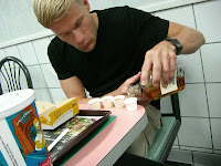 Alex bloggar ivrigt och Jonas häller upp virre på Mc Donald’s.