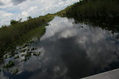 Här åker vi träskbåt i Everglades. Var bra drag i den när han blåste på.