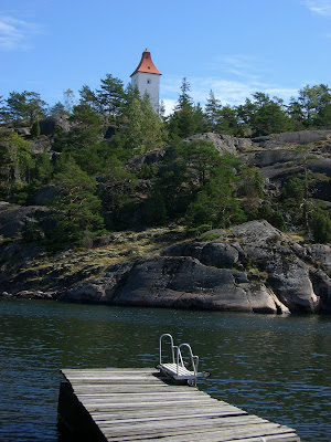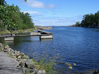 Det var så molnigt i morse att jag struntade i båtturen till Hasselö. Dumt kanske, men jag var trött också, kollade på film till kl 2. Nu hänger jag här någon timme, sedan blir det återfärd mot Stockholmm som det ser ut nu. Om jag inte väljer att stanna en natt till förstås, vi får se. Jag säger det igen: vädret får avgöra.