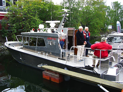 5. Nej, snygg är den inte. Ej heller lätt att klämma in i en gästhamn eller lägga upp på vinterförvaring, om nu nån tänkt det. Men köper du en Rawcat 40 har du andra behov. Pråmen, för det är väl det närmaste man kommer, är en helt fullutrustad lägenhet med isolering och kamin i vardagsrummet som vätter föröver. Akterut finns två sovrum, kaklat badrum och även ett fullutrustat kök med 80 liters kylskåp och spis i anslutning till vardagsrummet (se de inklippta småbilderna ovan). På en liten pinnstol framme på styrbords sida sitter man även och kör skapelsen.
