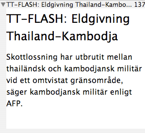 Skottlossning har utbrutit mellan thailändsk och kambodjansk militär vid ett omtvistat gränsområde, säger kambodjansk militär enligt AFP.