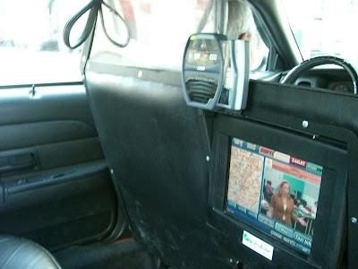 Cab ride. Senast jag var i New York, 2004, var det cash som gällde i taxibilarna. Men den här Fordhäcken som jag fick tag i tog både kort och hade internet. På skärmen kan man läsa nyheter och kolla Eyewitness News. Kvitto fick jag också, bara en sån sak.