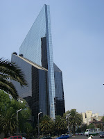 Har varit ute och gått i parken Bosque de Chapultepec, kollat in finkvarteret Polanco, åkt varm t-bana och tagit kort på Mexokobörsen, Bolsa de Valores (vänster). Man skulle kanske kunna säga utan att överdriva att börskrapan andas en aning hybris, där den ligger längs huvudavenyn Paseo de la Reforma.