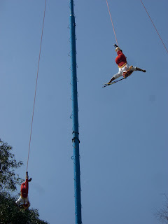 I Bosque de Chapultepec sprang jag på några indianer som sysselsatte sig med en helt livsfarlig ritual uppe på en hög stång, säkert 40 meter. Se bilden till vänster.
