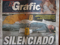 Journalistik: Mex-pressen gör ett stort nummer av den senaste sammandrabbningen mellan polisen och knarkligorna, som smugglar kokain från Colombia norrut genom Mexiko mot den stora marknaden i USA. Sju förmodade ligamedlemmar sköts till döds på öppen gata i staden Reynosa i nordöstra Mexico, strax söder om gränsen till USA. Tabloiden El Gráfico kör en närbild på ettan med en av de skjutna samt bannern ”SILENCIADO” (ungefär ”tystade”). Det är kriminaljournalistik det.