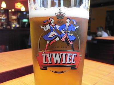 Polsk öl. Inte den bästa jag smakat, rätt blaskig. Men den andra var bättre än den första. Restaurangpriserna är låga. En varmrätt på det här stället går loss på runt 30 zloty, ca 75 kr. 100 zloty ungefär 250 kronor.