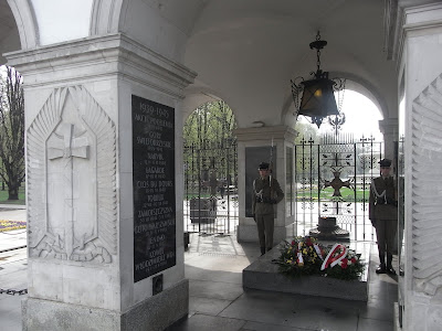 Okände soldatens grav i Warszawa. Två soldater står ständigt i givakt.
