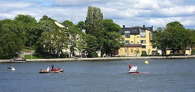 Seglaren till höger med sin minibåt havererade mitt ute på fjärden och hade problem med att räta upp båten igen. Förnöjsamt att kolla på. Fint väder var det idag också.