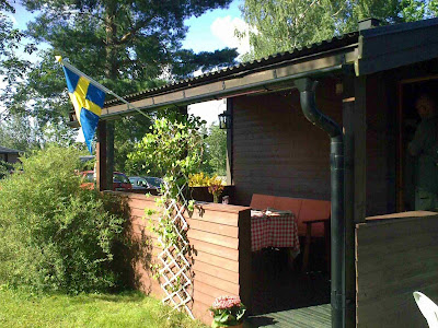 FRIDENSLUND. Jag befinner mig vid ett av två Fridensluund med bara ett par mils mellanrum strax väster om Finspång, vid en sjö som heter Stora Tron. Här har delar av familjen inköpt ett fritidshus, det man ser på bilden, som jag nu besiktigar. Det är brunt, ligger två minuter från nämnda sjö – där det finns en jolle – och det är helt tyst, grönska och blommor och väldigt vackert. En bondgård ligger precis bredvid. Min gps, Astrid, ledde mig hit via en grusväg ingen utom hon visste fanns, så man kan säga att jag redan bidragit till en förbättring av stället eftersom det är närmare den vägen. Om än inte snabbare. Dessutom hjälpte jag just till att koppla in infravärmen.