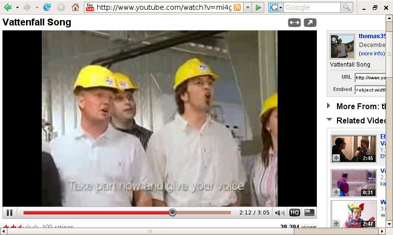 Antingen har någon på det skandaldrabbade Vattenfall läckt en intern motivationsvideo för personalen, eller så har något hänt som jag inte begriper. I alla fall – här är den, fresh from Youtube: The Vattenfall Song! Inklusive Josefsson. Klicka play och fröjdas.