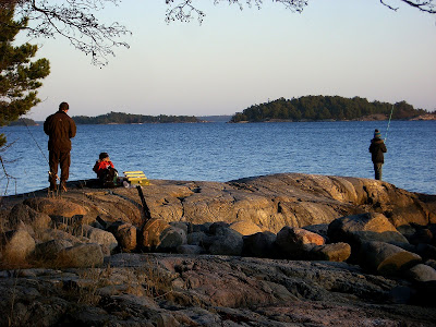 Några envetna sportfiskare hoppas på napp nu när fisken inte är så slö i varmvattnet.