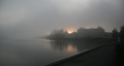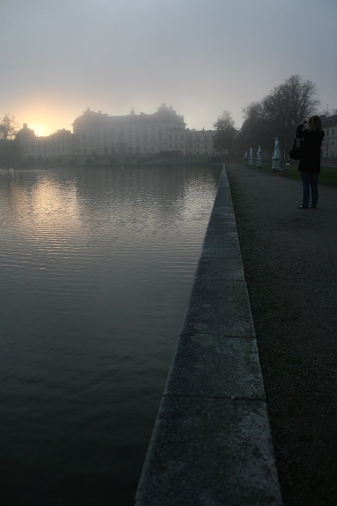 Vi var en sväng till kungaboningen Drottningholm på söndagen – så här såg den ut. Fuktig, frisk, kall dimma lägrade sig blixtsnabbt över inte bara Ekerö utan hela Stockholm. Vet inte vartifrån den kom.