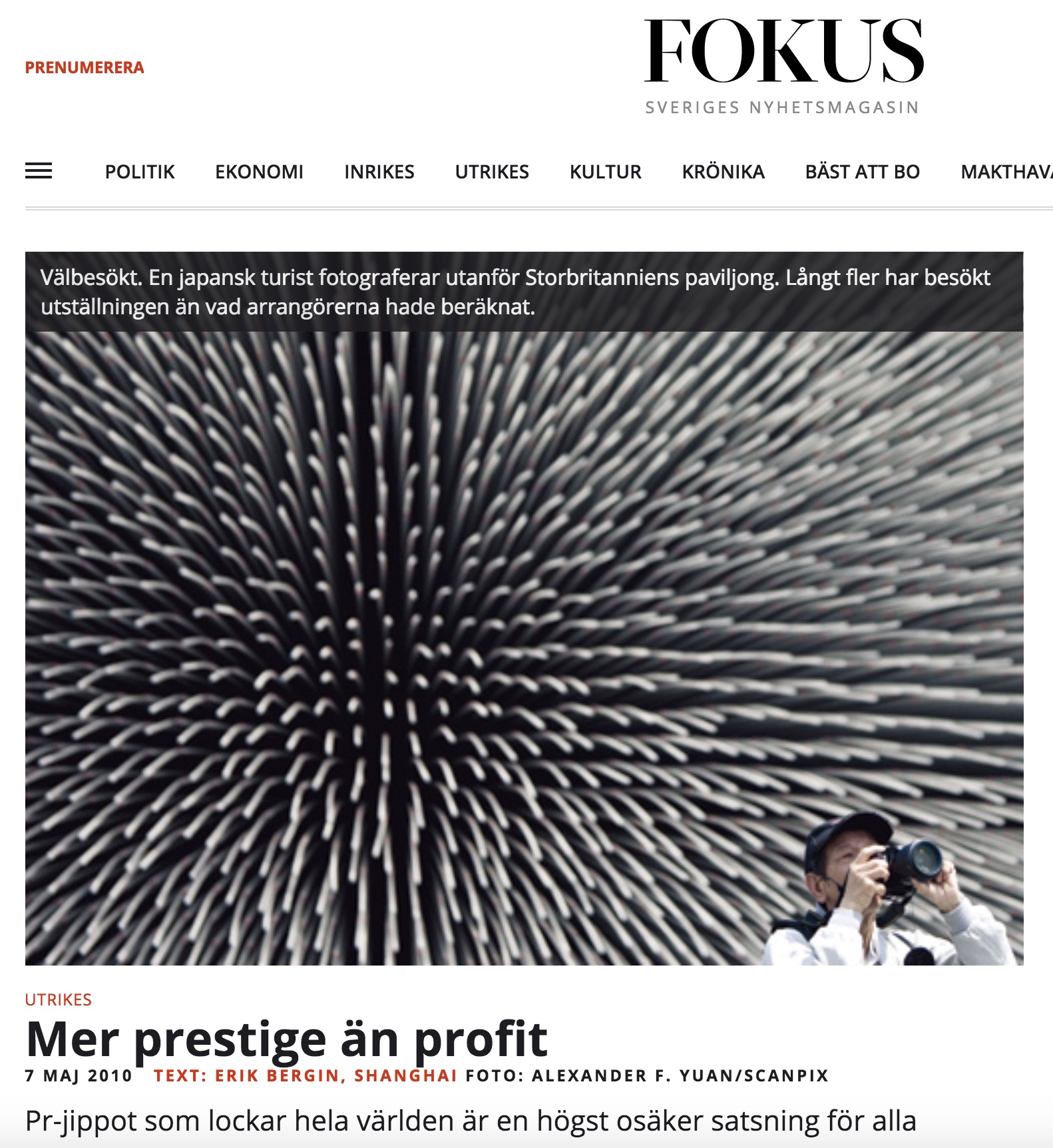 Ett av mina frilansjobb, i tidningen Fokus, handlar om varför världsutställningar existerar — överdrivet dyra, med liten praktisk nytta men med mycket prestige. Läs här.