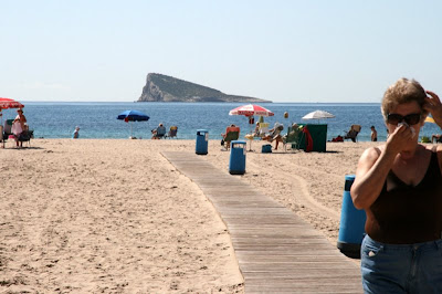 Har nu snabbt kollat in pensionärs- och partypatadiset Benidorm, några mil norr om Alicante. Chansen är god att jag aldrig kommer dit igen, det lockar inte direkt. Beachen är fin men stället är helt sönderbyggt av höga betonghus och kringgärdat av motorväg. Klientelet som jag såg består till stor del av lätt överviktiga nordeuropéer i bar överkropp som vaggar omkring mellan paella-ställena nere vid strandvägen.
