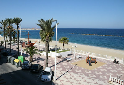 GARRUCHA. Det blir bara bättre och bättre: nu har jag hamnat i kustbyn Garrucha med balkong ut mot beachen för mindre pengar än gårdagens rum, då jag bara såg stranden från sidan.