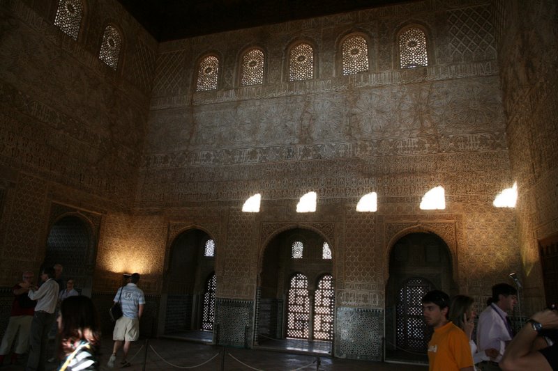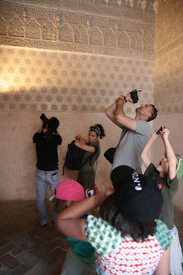 1: ALHAMBRA. Har idag varit inne i Alhambras allra mest utsökta innersta, dit man får biljett med tidsstämpel i halvtimmesintervaller som visar när man får gå in: Nasrid-palatset. Av alla palats och andra fornlämningar man sett genom åren så hamnar det här i absoluta toppklass. Dels byggnaderna i sig, men det är inte det bästa. Istället är det helheten, skulle jag säga, med palatsrummen och dess detaljrika dekorationer, de utsökta trädgårdarna, utsikten från kullen ut över Granada och dammarna med det rinnande vattnet.
