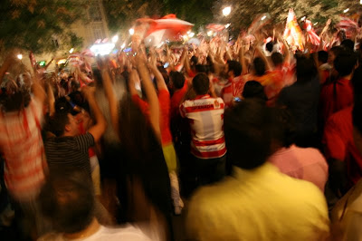 2: GRANADA VS. MADRID. På väg åter till hotellet från Alhambra hamnar jag i värsta fotbollsfesten: Granada vs. Madrid. Av firandet, tutandet, fyrverkeriskjutandet och uppsluppenheten att döma gick det Granadas väg ikväll.