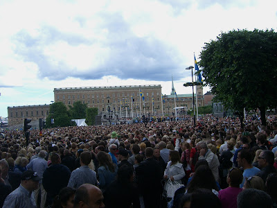 NYBROVIKEN. Såg Stockholm som turist idag. Har gått runt kajerna i stan i sommarsolen denna söndag och bara njutit av att allt är så vackert och folk verkar vara så glada. Det är väl bröllopets förtjänst. Aldrig nånsin sett så många turister här, tror hälften av alla jag mött varit utsocknes. Såg det danska kungafartyget Dannebrog lägga ut, det måste vara ett av världens finaste fartyg. Drottningen själv tog dock tydligen flyget, enligt uppgift på kajen. Nu är jag på väg med sightseeingbåt till djurgårn.