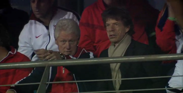 Ghana, sista afrikanska lag att ha någon chans att komma vidare i VM i Sydafrika, slog ju USA igår kväll med 2-1. Matchen sågs bland många andra av USA:s förre president Bill Clinton och Rolling Stones frontfigur Mick Jagger, som enligt tv-bilderna verkade djupt involverade i matchen.