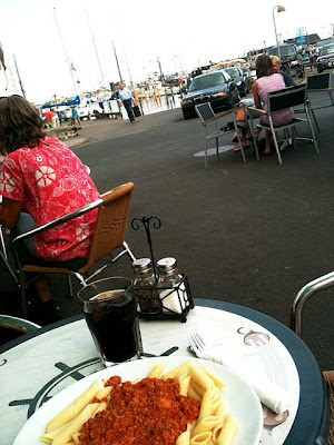 Det är ju strax över tio år sedan Öresundsbron invigdes, så jag tänkte det kunde passa med ett besök i Dragør, den lilla till synes välmående orten i brons skugga dit det gick passagerarfartyg tidigare om jag inte minns fel. Sitter nu med min sena lunch, pasta bolognese, och ser ut över hamnen där jag ska gå en sväng sedan.