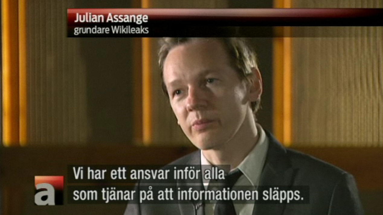 I intervjun med Aktuellt konfronteras Assange med den senaste kritiken om att han riskerar liv genom att låta publicera de tiotusentals uppgifterna från kriget i Afghanistan. Detta skulle bero bland annat på att talibaner kan läsa materialet och därigenom slå tillbaka mot afghaner som hjälper USA med underrättelser och annat stöd. Assange tillbakavisar kritiken genom att säga att de läckta dokumenten på Wikileaks i själva verket, som han menar, avslöjar att 20 000 civila har omkommit i kriget och att den amerikanska försvarsmaktens ansträngningar för att minska antalet civila dödsoffer brister.