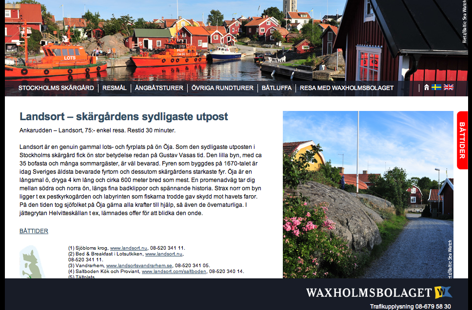 Sitter just och planerar en liten eventuell minitripp ut i Stockholms skärgård. Hittade Waxholmsbolagets sajt minisemester.nu som visar sig vara användbar. Kort beskrivning av öarna, bilder och tidtabell på ett och samma ställe. Klicka på ”Resmål” för att se vad denna världsunika arkipelag bjuder.