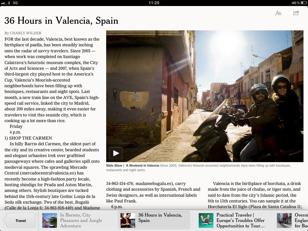 SÖNDAGSLÄSNING. New York Times har åkt till Valencia, Spanien, staden som uppfann paellan, för att vandra gränderna, studera havsutsikten och ta reda på vad som gör Valencia till en uppåtgående stjärna på den hippa turisthimlen. Läs storyn – klicka länken nedan.