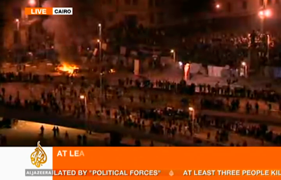 • Onsdag eftermiddag/kväll/natt: rapporter om heta bråk mellan anti-Mubarakdemonstranter och Mubarak-anhängare rapporteras från flera håll i Kairo (se tidigare inlägg). Flera dödsfall rapporteras, det spekuleras om att regimen ligger bakom bråken för att skapa kaos. Militären vägrar ingripa.