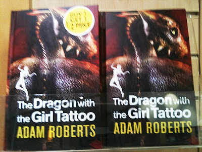 Var inne i en bokhandel nyss och hittade den här boken, The dragon with the girl tattoo, av en lustigkurre som heter Adam Roberts. Hela verket är förstås en drift med Stieg Larssons Millennium-serie. Den kvinnliga huvudpersonen i den heter Lisbreath Salamander. Ganska roligt.
