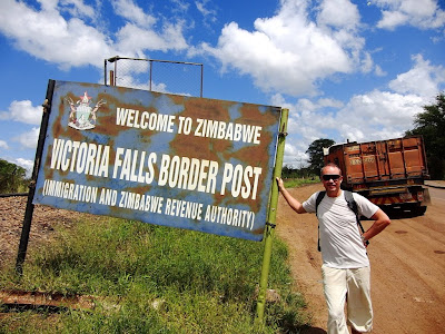 Jag tillbringade cirka tre timmar i Zimbabwe – uppriktigt sagt känns inte staden Victoria Falls värd så mycket mera tid. Mängder av försäljare av träsnidade elefanter som, när du inte vill köpa någon, försöker byta till sig dina skor mot en souvernir. Zimbabwe har övergett sin egen valuta, för att komma undan hyperinflationen som Mugabe har orsakat med sin tokiga politik, och gått över till US-dollar, som finns i bankomaterna. Därmed har zimbabwesiska miljard- och biljon-sedlar, för vlka du inte kan köpa någonting, också blivit souvernirer.
