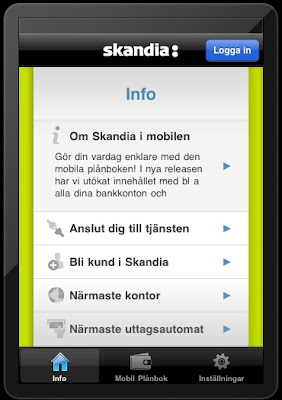 Använde just Skandia-appen i min Iphone för att kolla saldo. Nu är inte meningen att göra reklam för just Skandiabanken här, även om den appen är grym (fixar överföringar mellan konton, saldo, karta med närmaste bankomat med mera direkt i mobilen), utan snarare att uppmana till att kontrollera vilka mobila tjänster din bank har. Om du reser mycket är det guld värt att kunna fixa enklare grejor i mobilen. Själv skulle jag till och med överväga byte av bank om den jag hade inte var vass på mobila tjänster. En fullservice-app är förbaskemig det minsta man kan förvänta sig i det 21:e århundradet. Så det så.
