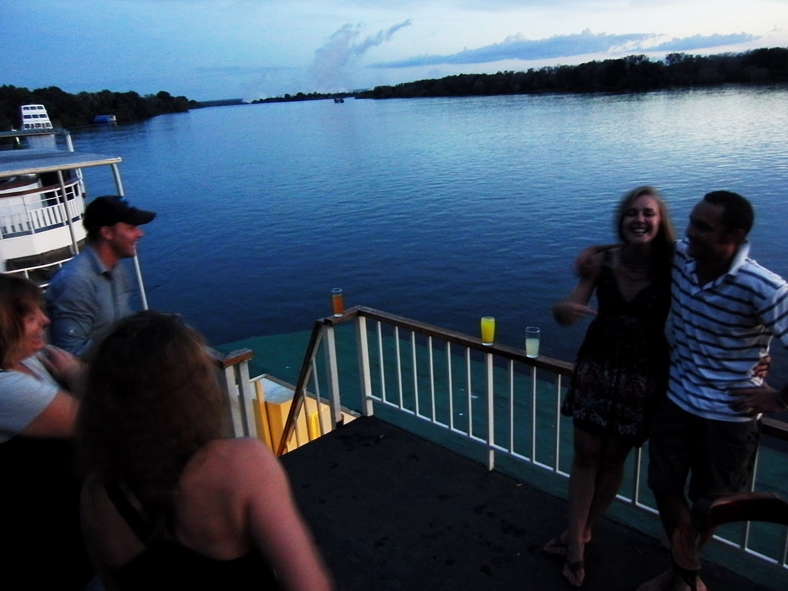 Med på resan var även ett zambiskt par från Lusaka. De höll sig lite för sig själva, kände sig möjligen inte helt bekväma i de anglo-europeiska dryckestraditionerna som snabbt visade sig på övre däck. Men jag pratade lite med dem. Hon såg inte ut att vara en dag över 30. Han, fyllda 53, hade just pensionerats från zambiska armén där han jobbat med bokföring.