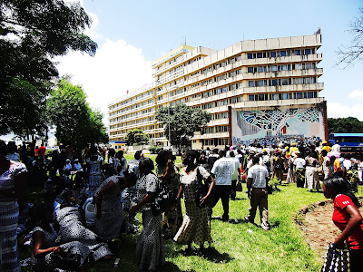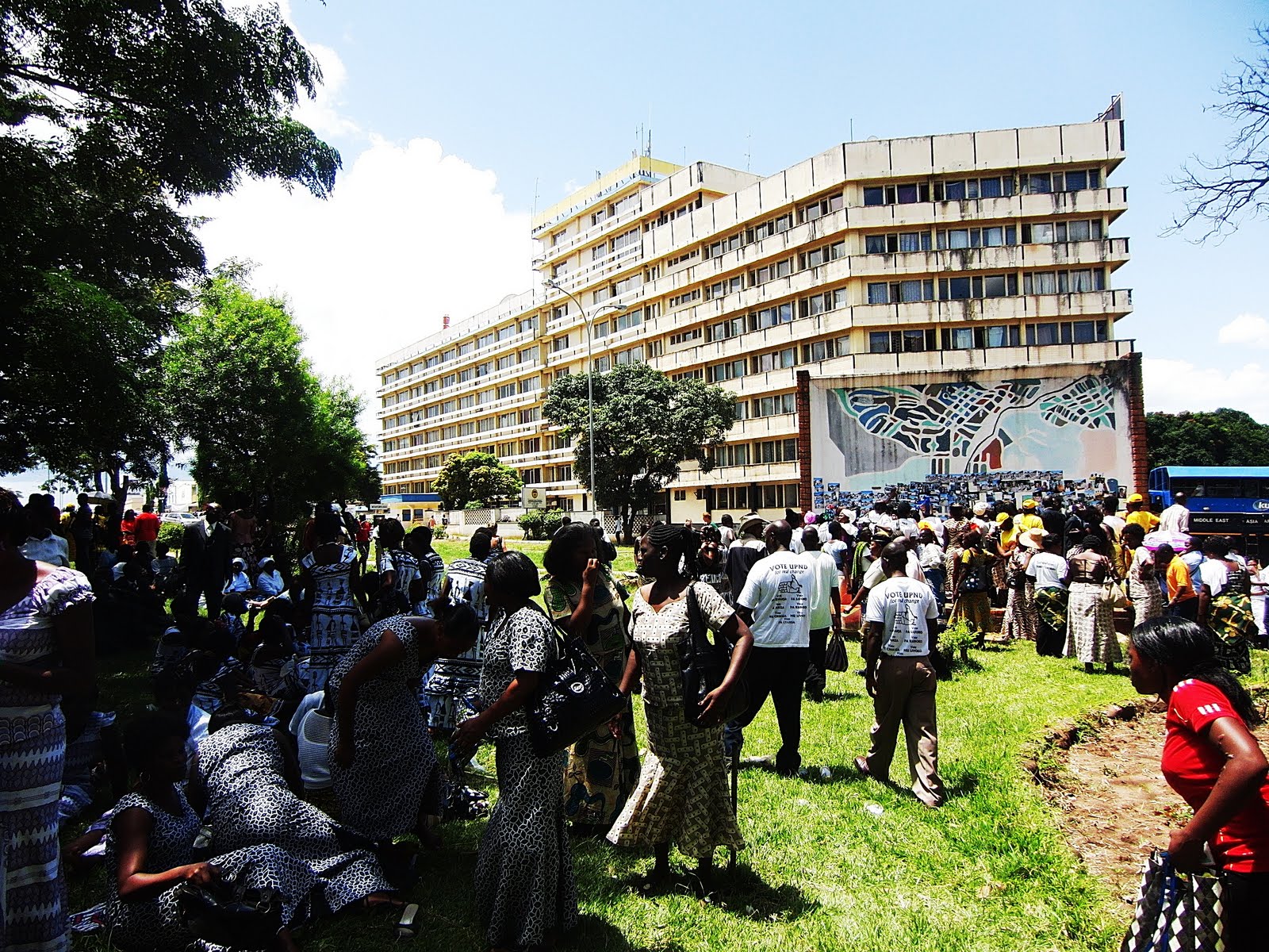 Kvinnodagen firas rejält här: ett stort jippo höll på halva dagen i Civic center mitt i Livingstone. Alla kvinnor var fantastiskt uppklädda – i grupper rörde de sig runt stan där varje grupp, kanske representerande varsinn organisation, var dressade i kläder av samma tyg. Feststämning i luften. Bankerna var stängda tillochmed. När ska Sverige nå den nivån?