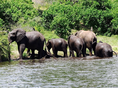 Tjuvjakten, bland annat på elfenben, i varje fall i Botswana, har sjunkit kraftigt, enligt guiden. Numera patrullerar militär parkerna och hotar jägarna med vapenvåld om de råkar komma på dem. Just här finns elefanter i överflöd, över hundratusen individer enligt guiden, så pass att det mellan raderna verkar som det helst inte ska bli fler.