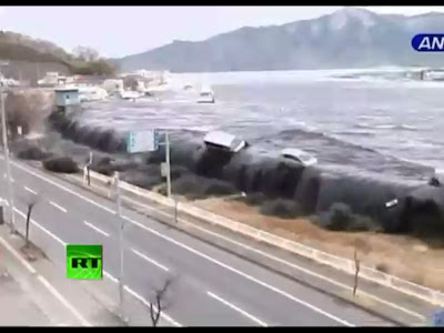 Här är ännu en i raden av dramatiska bilder som visar tsunamivågens grymma framfart i fredags i norra Japan. Bilar kastas över ända som leksaker, båtar välts över ända, hela städer förintas.