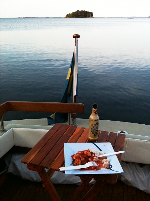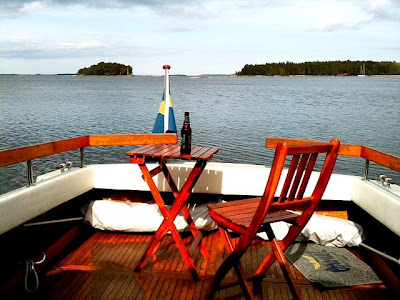 KYMMENDÖ — Här, på Kymmendö (eller Kymendö som lokalborna skriver) ostnordost om Ornö i Stockholms skärgård, satt Strindberg under ett par lyckliga somrar på 1880-talet och diktade. Den grå, spartanska stugan på norra Kymmendö är en av den privatägda öns främsta sevärdheter. Det är lätt att förstå varför Strindberg gillade stället. Skärgården är oerhört vacker, här som överallt annars, och det är helt enkelt makalöst avkopplande att sitta här och äta middag på akterdäck och bara se ut över det spegelblanka vattnet. Vardagen hemma i Stockholm är oerhört långt borta just nu.