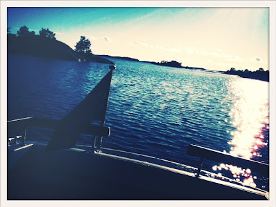 Eftermiddagsdopp vid Böteskobben. 17 grader. Ett par båtgrannar från två veckor sedan vid Bullerö ligger i viken mittemot. 4 sekundmeter ost, vridande till syd, god sikt. Livet leker.