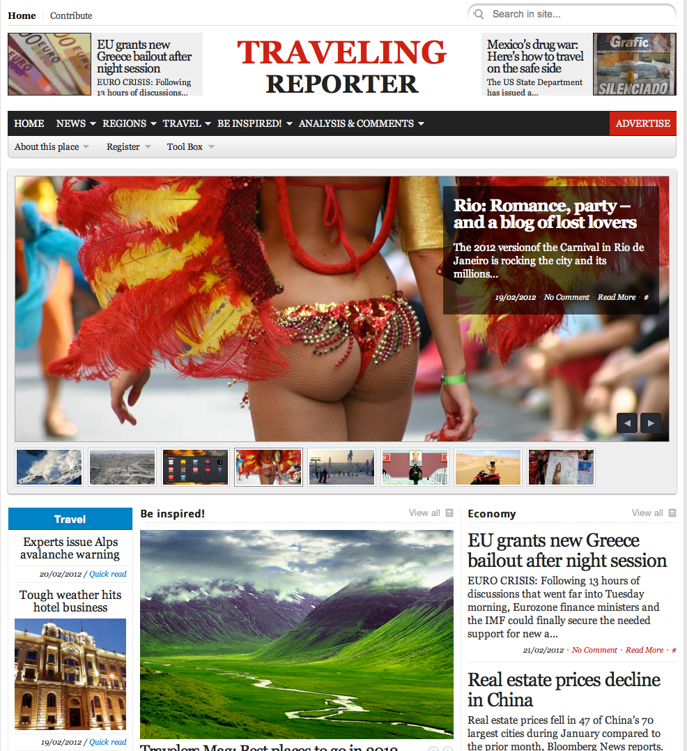 • Reportage, bilder och tips sorterat under News, Regions, Travel och Be Inspired!