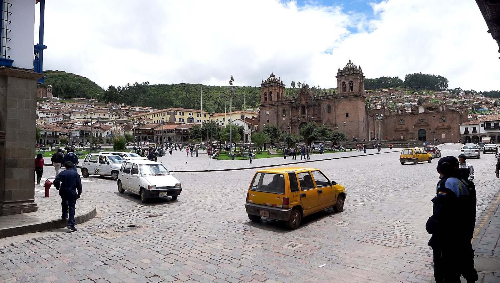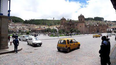 På en av bilderna, med katedralen, syns huvudtorget, Placa del Armas, i Cusco. De två andra visar två av Juliacas sämre sidor.