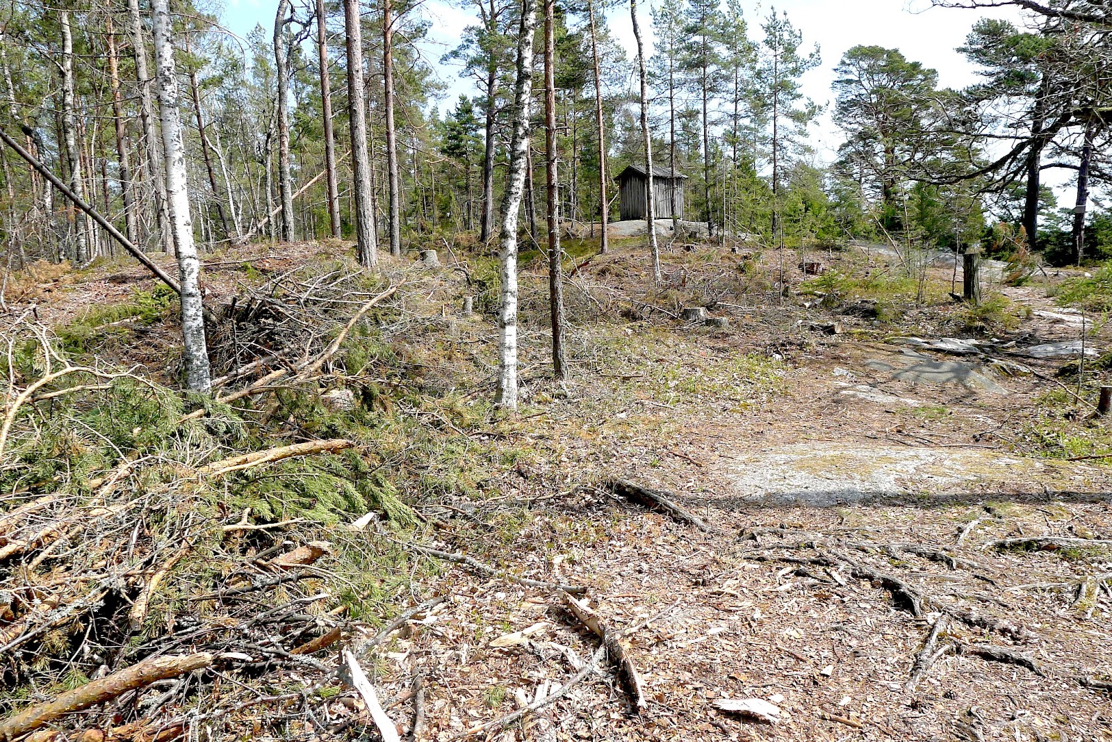 Skogen kring Strindbergs stuga på södra Kymmendö är illa skövlad. |
