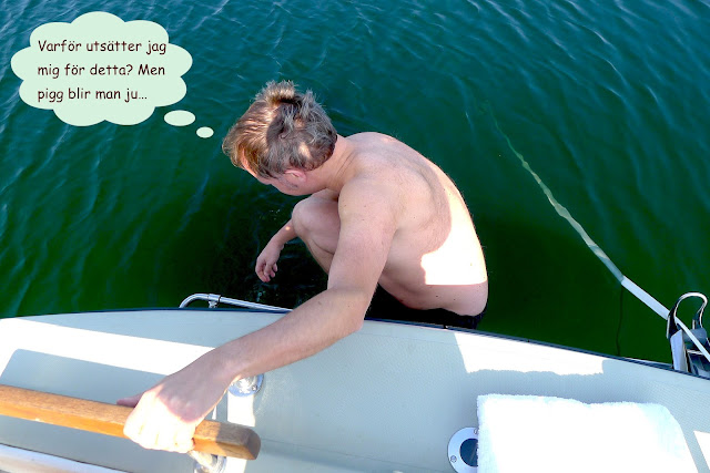 Vädret var skapligt och jag morgonbadade i åttagradigt vatten eftersom solen trots allt värmde. Men satan vad kallt det var. Man piggnar till rejält.
