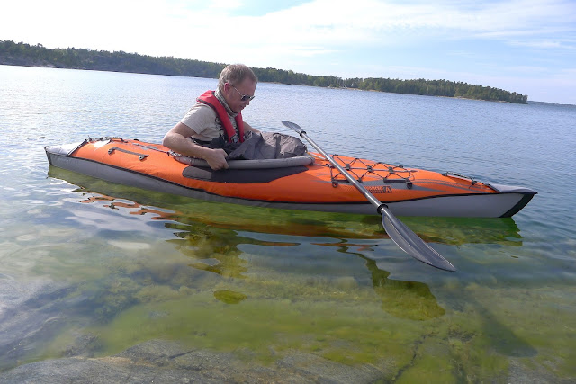 Invigde också min Advanced Frame uppblåsbara kajak – vilket verkar vara ett kanonköp. Hyfsat riktningsstabil och ganska lättpaddlad trots sin breda skrovform. Den kommer kunna göra god tjänst i sommar. Men jag tror att jag ska införskaffa en lättare paddel, den fyradelade jag fick med är aningen tung.
