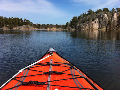 Så här fint är det vid Ostholmen strax öster om Möja i början av maj (om nu bilden kommer med…). Jag blåste upp min kajak och paddlade runt ön på en timme. Lagom motion.