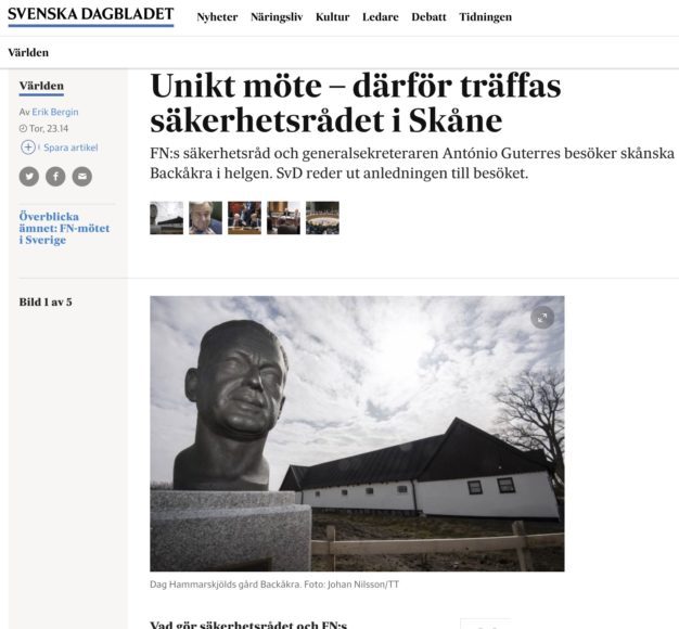 Jag skriver i SvD om anledningen till att FN:s säkerhetsråd träffades i skånska Backåkra i april för sitt årliga arbetsmöte — första gången utanför USA. Här finns artikeln.